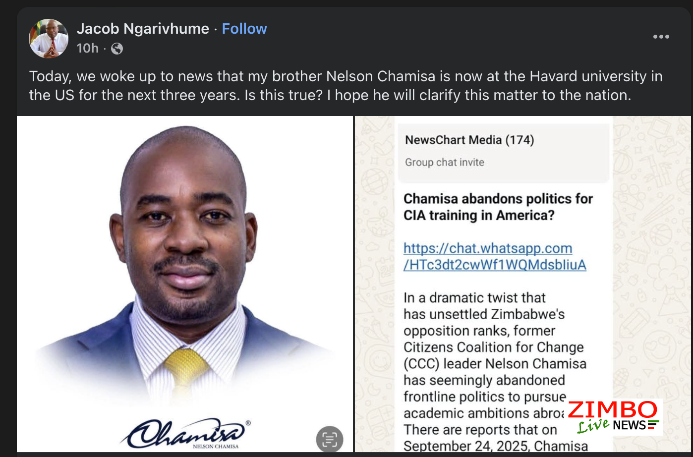 Speculation has it that Zimbabwean Opposition Figure Nelson Chamisa has left the country to pursue academic ambitions abroad.